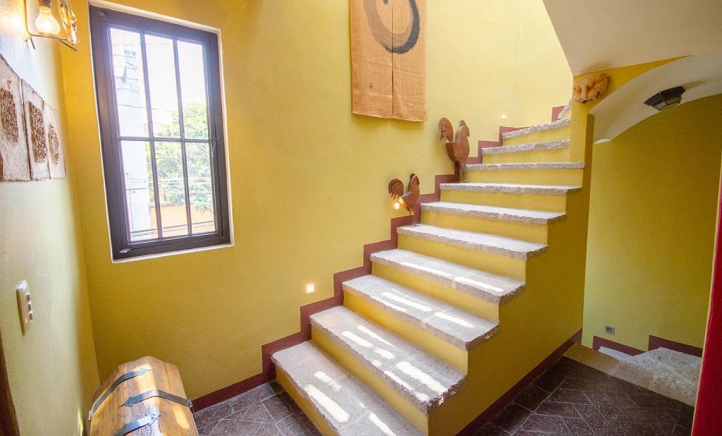 Casa Felicidad is a lovely home located in the neighborhood of San Antonio, just a short 10 minute walk to The Jardin, or center of town. This furnished home offers a large living room with a hand carved cantera gas fireplace, fully equipped kitchen with breakfast bar, dining area and powder room on the first level. Comfortably illuminated stairs take you to the second floor where you will find the Master bedroom with private bathroom and guest room and bath room with shower. On the third level is the laundry room and a large outdoor snd partially covered terrace with 360 degree views including La Parroquia of San Miguel. The perfect place to start your mornings or end an evening! Without a doubt, an intelligent investment as this property has a solid history of rental income. This Casa has internet and an alarm system.