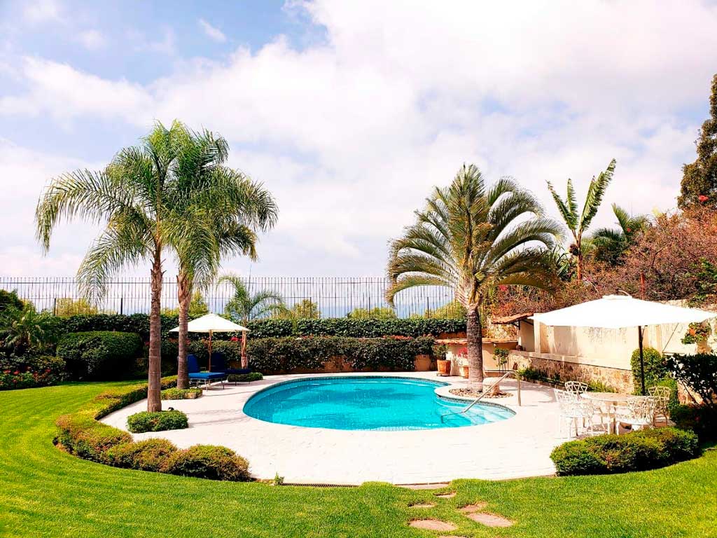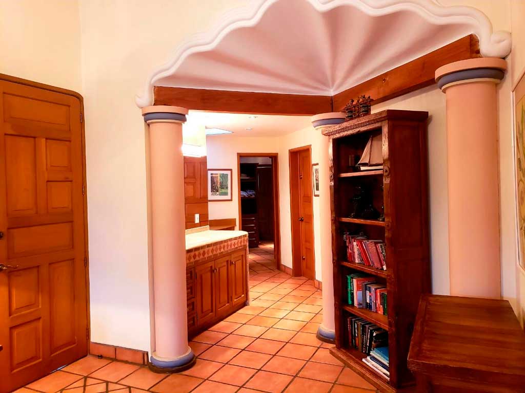 This lovely arquitect-designed fully-furnished home with Mexican details throughout on the quiet part of the malecón ticks all the boxes for the village life connoisseur: 3 bedrooms, 3 bathrooms and 2 half baths on the ground floor, plus master suite with sweeping views over the lake and mountains on the second floor. The covered terraces adjoining the upper master suite invite you to enjoy private moments, watching sunrise and sunset, and the peaceful life on the malecón. The discreet street entry opens to a romantic patio with a gurgling fountain and built-in benches. Living room boasts 5 meter high ceilings with recessed lighting and fire place. The formal dining room – also with fire place – is accessed via a grand hand carved cantera arch, and leads to the generous covered terrace, perfect for relaxing and entertaining. The terrace overlooks the delightful mature gardens and large kidney-shaped swimming pool.Solar hot water, solar-heated pool, a solar electric system and a sophisticated security system allow you to fully enjoy life in this privileged Ajijic home. Amenities: High Speed Internet, Federal Zone Permit, Deck/Balcony, Covered Terrace, Cable TV, Phone Line, Security System, Walled/Fenced, Yard/Jardin