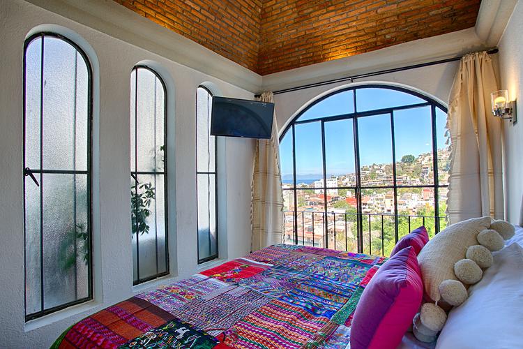 Ingrese directamente desde una hermosa calle sin salida adoquinada y sombreada, que lo llevará arriba al espacioso nivel principal, con enormes ventanas arqueadas, que enmarcan una vista increíble de las exuberantes colinas de Puerto Vallarta usurpadas por la impresionante vista del océano Pacífico.
