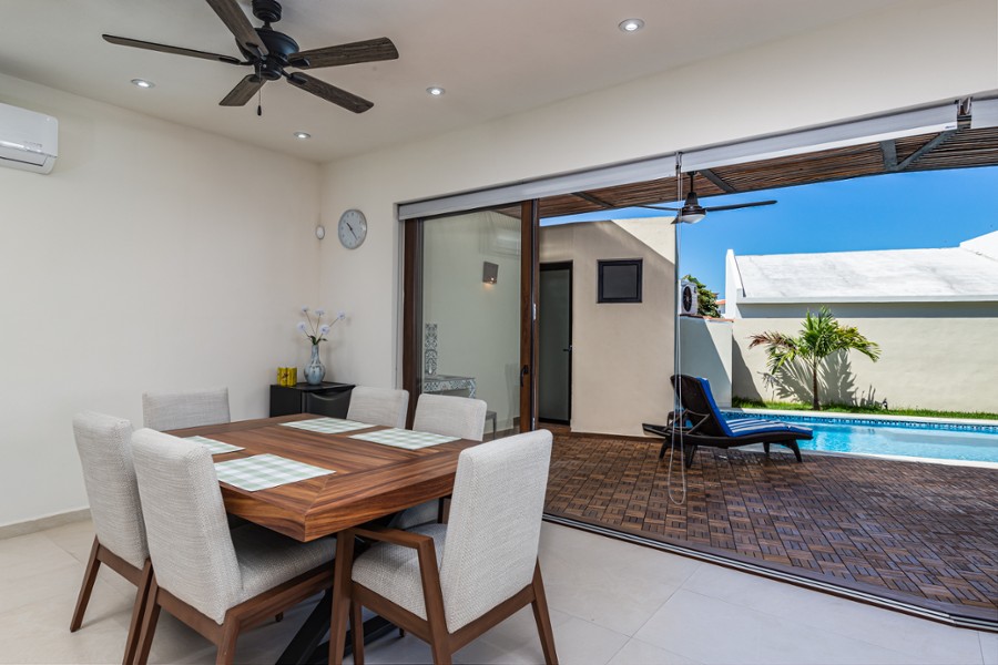 Increíblemente casa nueva, construida en Abril 2022, cuanta con espacios muy amplios, terminados modernos y un estilo contemporáneo en toda la casa. La puerta de entrada ofrece una fachada única e impresionante, con techos altos que comunica la sala, cocina, comedor, y área de alberca privada, en un concepto abierto y comunicado. Primer piso, 1 recamara/estudio y baño completo. Segundo piso, 3 recamaras con baños completos y cuarto de lavado. Tercer piso, una terraza muy amplia y medio baño. Patio privado con piscina climatizada, de agua salada, incluye fuente, luces, jacuzzi, y medio baño. Características únicas, 16 paneles solares, sistema de alarma con 3 cámaras de seguridad, persianas solares con cortinas opacas, sistema de purificación de agua en toda la casa, y sistema de riego.