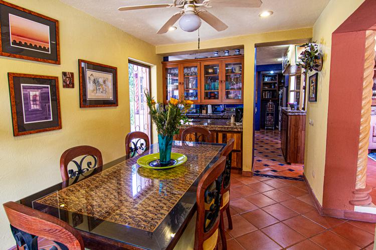 This charming home was once part of an old hacienda in downtown Ajijic and has been featured in the book, Behind the Walls. Could make a wonderful small B&B or income property! Main house has 2 en suite bedrooms PLUS two casitas and a library that could easily become another bedroom. Almost all bedrooms have a separate entrance! Do you want privacy? There are reading nooks that welcome you to curl up, enjoy a book or gaze at nature while you hear the clippity-clop of horses on the cobblestones and the church bells ringing and enjoy the cool breezes off of the lake. This home is secure, and tucked behind soaring walls with a pool and fountains. This storied home of several Ajijic writers is an artist’s haven. Villa Don has a peek-a boo lake view, a gorgeous mountain view and panoramic views of Ajijic from the mirador. Low-maintenance landscaping. Granite, Stainless in kitchen, tons of storage, lots of whimsical custom details. In an exclusive, quiet neighborhood in the village of Ajijic. Just steps to magnificent Lake Chapala and Ajijic’s outdoor market/tianguis on Wednesdays! Walk to the movie theater or to meet your friends at one of many local restaurants. Grocery store is right around the corner, walk to upscale boutiques, art galleries, the plaza and the Malecon/lakeside boardwalk. This is NOT a cookie-cutter home! Call today to schedule an appointment to see this totally unique home in paradise!