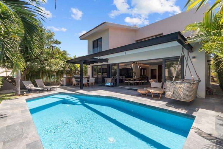 Abarcando dos amplios niveles, esta propiedad cuenta con un garaje que puede acomodar fácilmente cuatro coches. Al entrar, será recibido por un encantador vestíbulo que inmediatamente establece un tono de elegancia. El cuidadoso diseño garantiza la privacidad, con una entrada situada a una altura diferente de la puerta principal. La planta principal cuenta con una versátil habitación flexible con baño completo, un luminoso y acogedor salón-comedor y una moderna cocina equipada con una elegante isla. Otras comodidades incluyen un lavadero funcional, un cuarto de servicio con su propio aseo y una despensa bien equipada. Salga a su encantador patio, donde encontrará una brillante piscina y una zona de barbacoa, ideal para entretener a familiares y amigos.