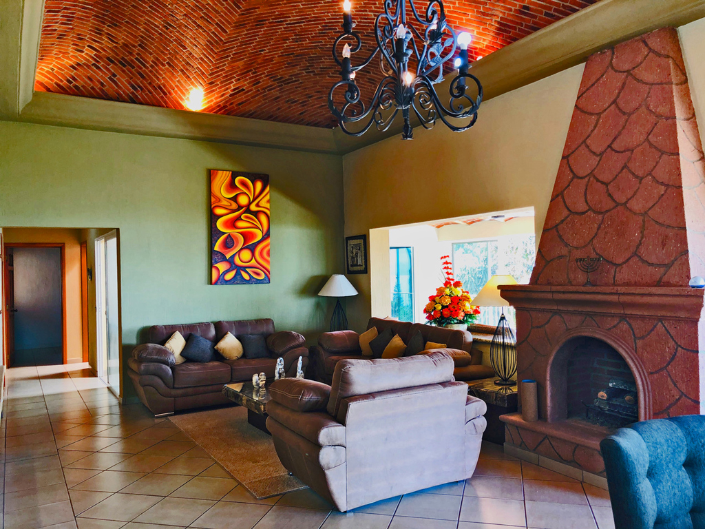 In a cul-de-sac street, wonderful views, 3 bedrooms, and on-suite, plus 2 half baths, office or TV room, family room, beautiful and very relaxing covered terrace, open concept Kitchen - dining & living room, beautiful large kitchen two car garage, automatic, fireplace, very ample rooms, Walk in closets, big terraces, storage, bodega, high speed internet. Master bedroom is in the top floor. There are other two on the top floor for easy access with out stairs, also there is a kitchen and full equipped casita, good size yard. Walled, fenced, detached. Bonita propiedad en el Raquet Club, en calle cerrada, con hermosas vistas al lago. 3 recamaras con clósets y baño, más 2 medios baños para sus visitas. La terraza esta cerrada con puertas y mosquiteros corredizos, concepto abierto, área de oficina, recámara o cuarto de TV, aparte de el área familiar, gran cocina con encimeras de granito, despensa y lavandería. cochera para 2 autos, eléctrica, bodegas, internet, fibra óptica. La recámara principal está en el primer piso para fácil acceso sin escalones. En el piso de abajo, encontrara otras dos recamaras con baño, medio baño, gran terraza, cocina y amplio jardín. Casita para renta o visitantes.Amenities: Patio, High Speed Internet, Gated Community, Deck/Balcony, Covered Terrace, Boveda Ceilings, Wheelchair Access, Yard/Jardin