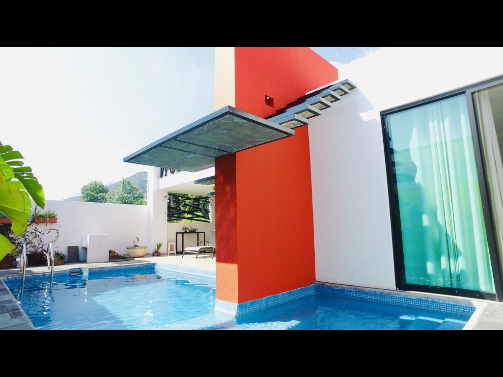 This amazing, contemporary 2 bed/2bath Villa is located in Privada Veracruz, a small gated community within the prestigious gated community Chula Vista Norte.It has a good size solar heated pool with integrated whirlpool into which you can just hop in from the master bedroom.Enjoy the sunsets on the lake from its rooftop terrace which can be reached by a “floating” staircase.It is fully, stylized furnished with lots of light, and boasts a gourmet kitchen – turnkey.Ideal for Investors!Amenities: High Speed Internet, Gated Community, Covered Terrace, Phone Line, Satellite System, Security System, Walled/Fenced, Wheelchair Access | ||